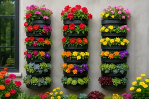 A well-designed vertical garden creates natural beauty and privacy screens, turning bland walls into lush, colorful backdrops.